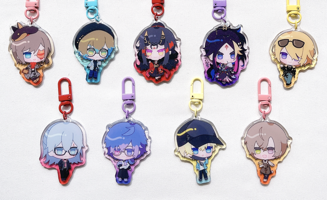 NOTE: We will no longer be restocking these designs! Nijisanji Gummy Charms in their new outfits! Featuring Luxiem and Noctyx!