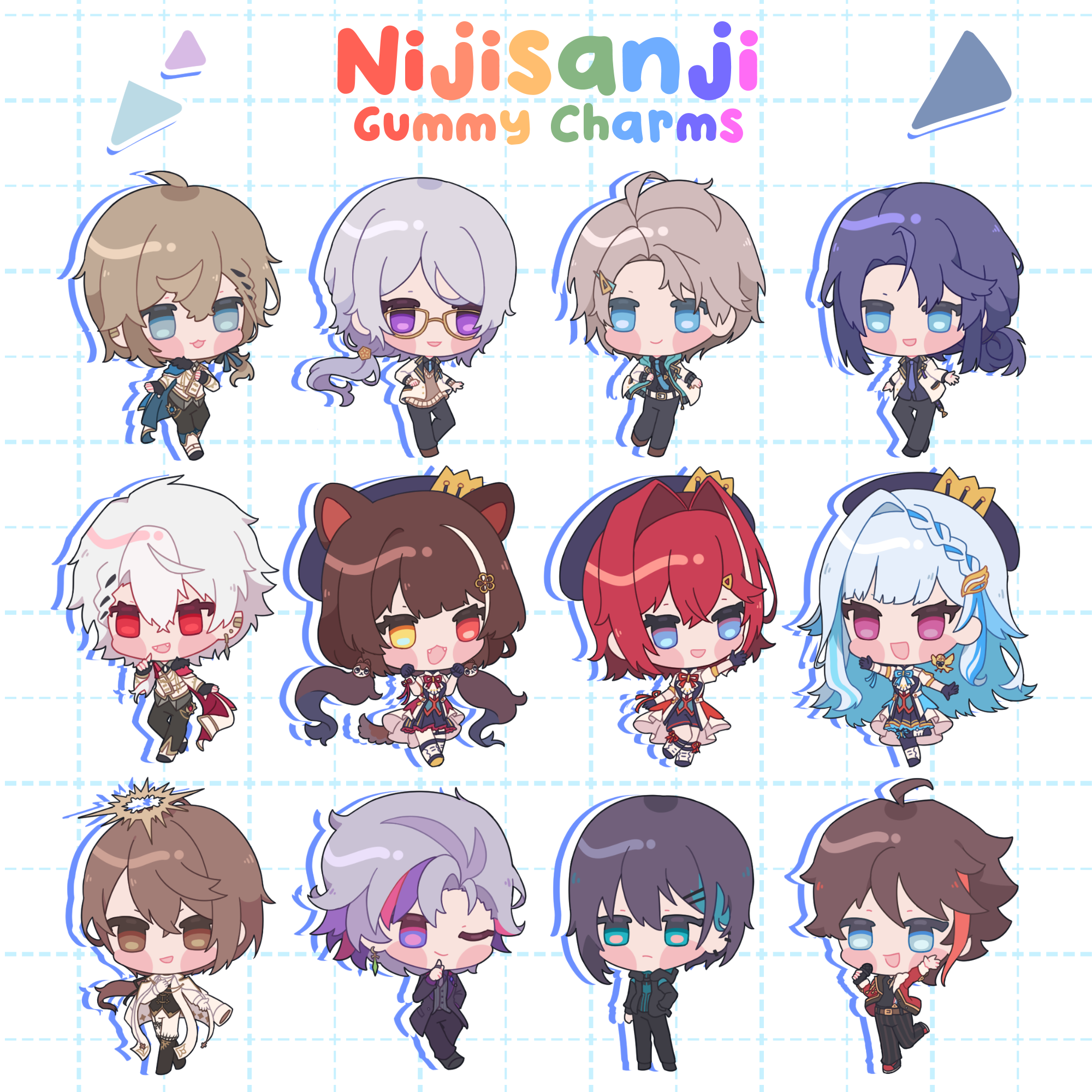 NOTE: We will no longer be restocking these designs! Nijisanji Gummy Charms in their new outfits! Featuring Chronoir, Meshers, VALZ, Sanbaka and Shachou!