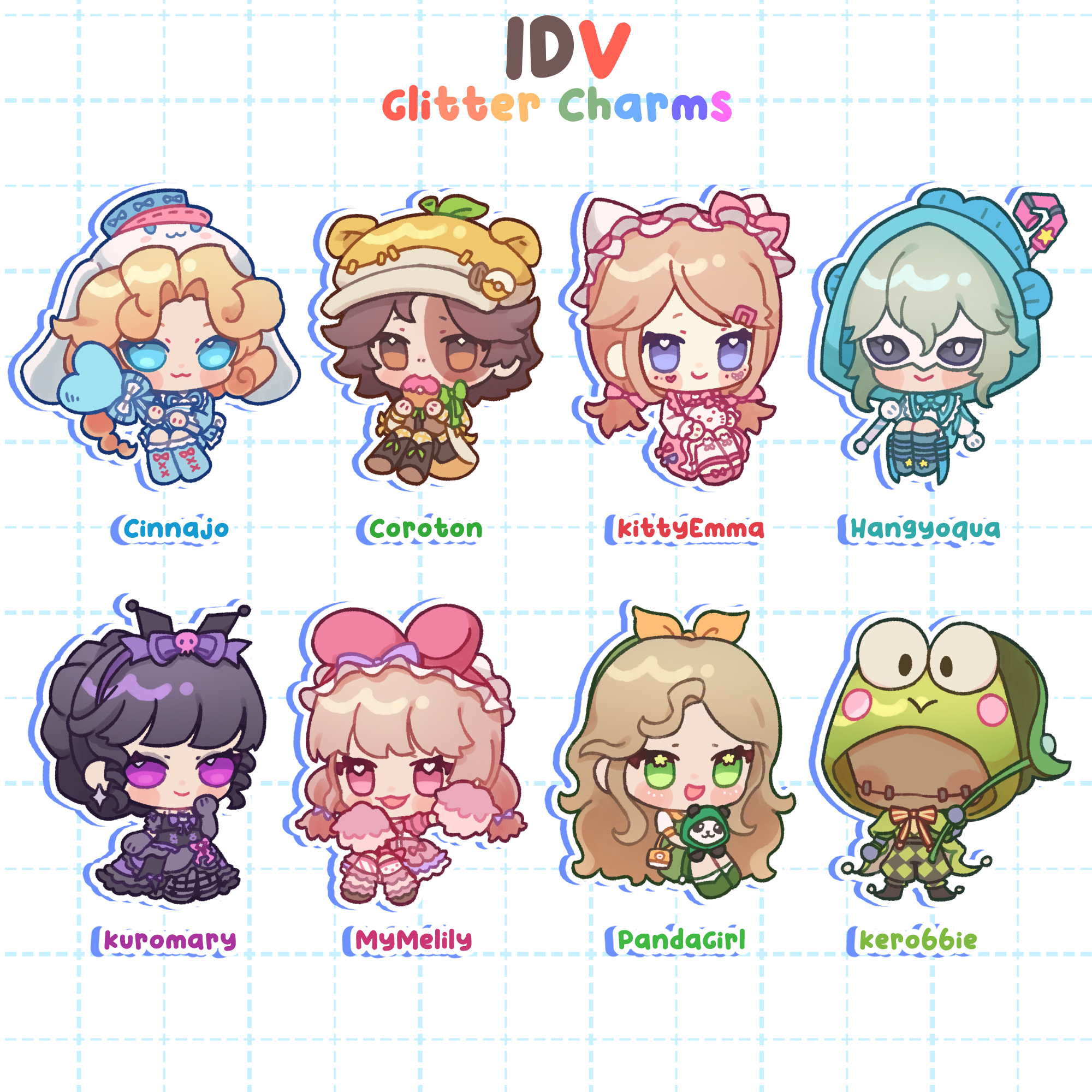IDV Glitter Charms! They have a translucent coloured BG on a glitter acrylic for extra magic!